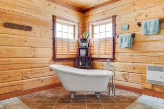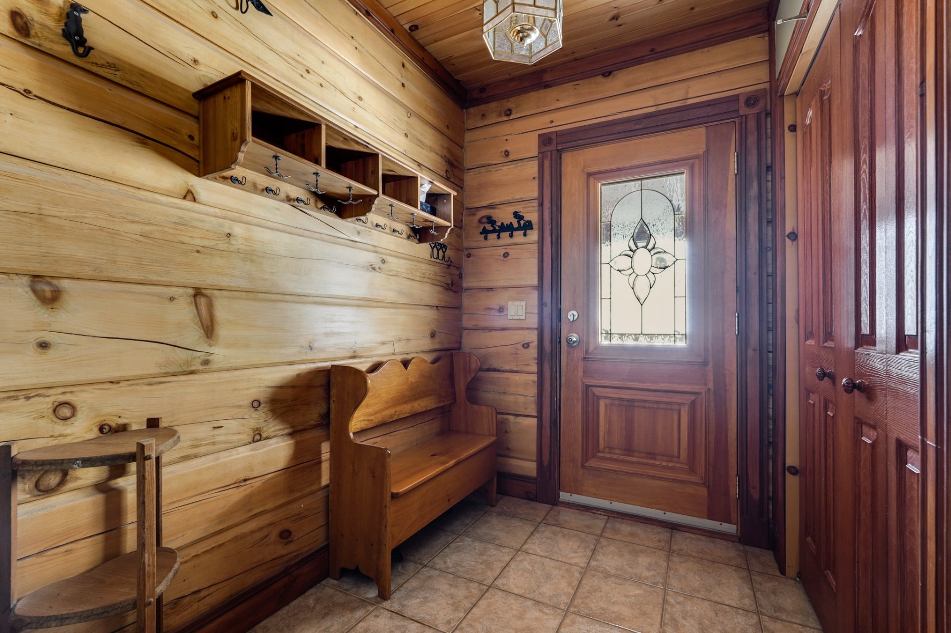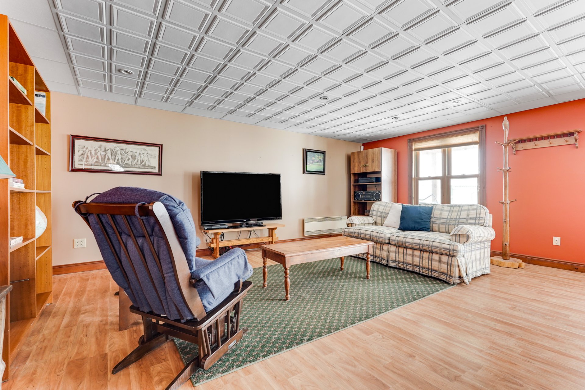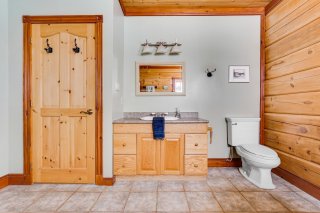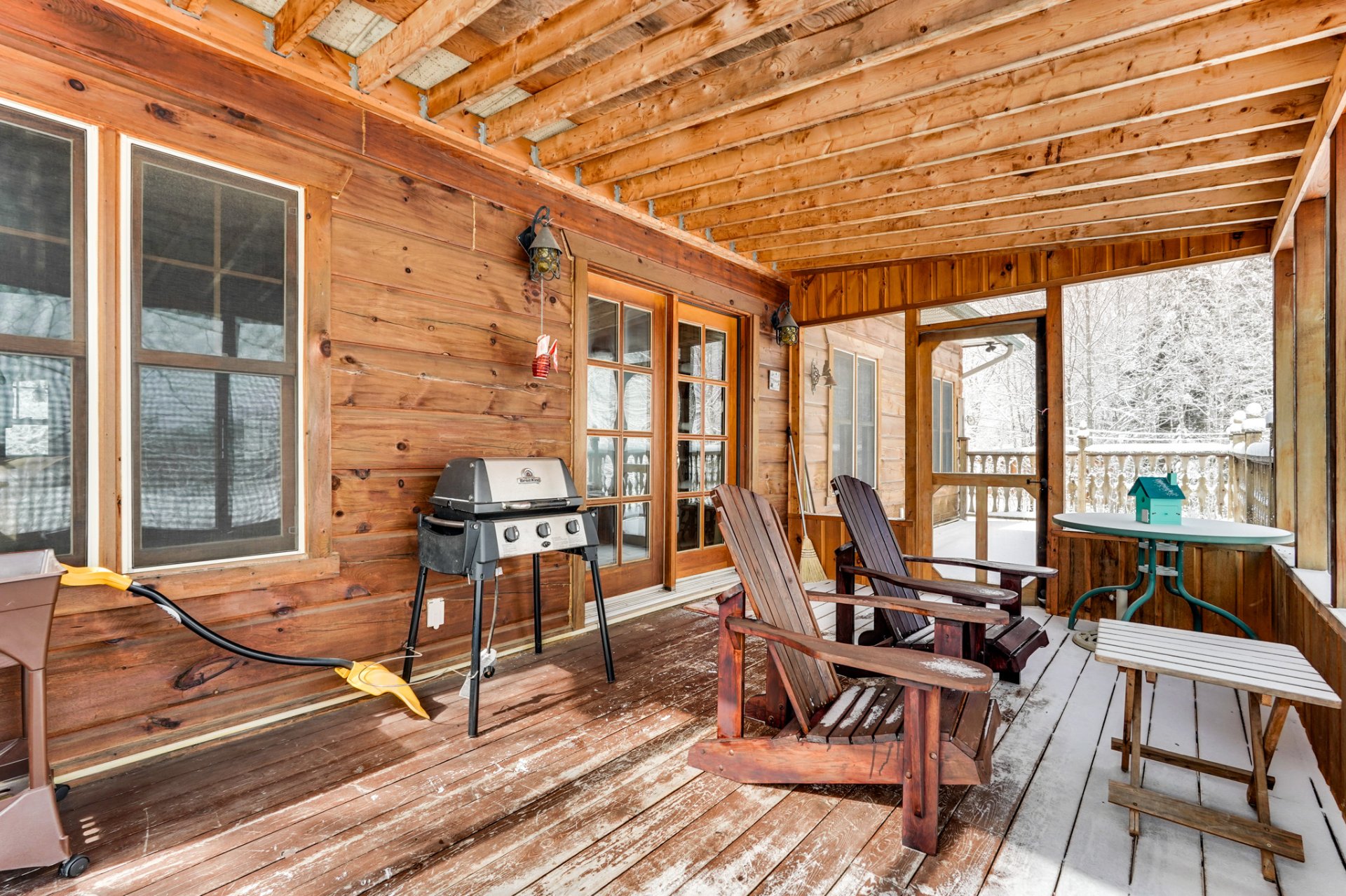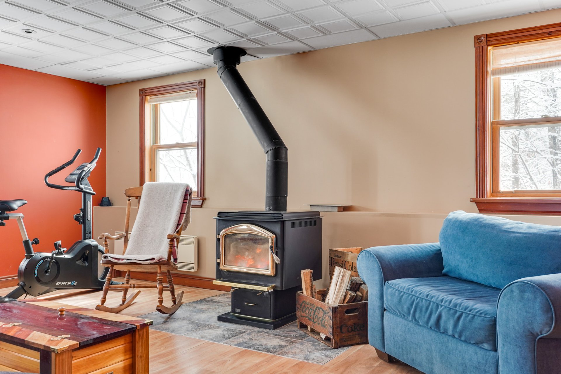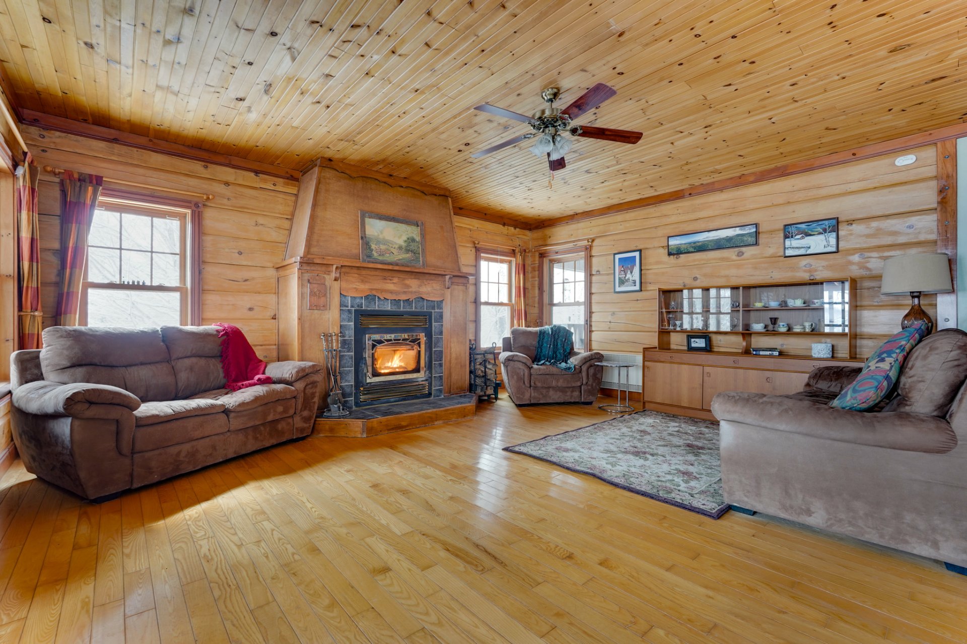 Exclus : Les accessoires du poêle à bois au SS et le porte-bûches du rez-de-chaussée, le porte-manteaux mural du hall d'entrée ainsi que tous les crochets métalliques muraux, les grands rideaux marron et la tringle à la porte du gazebo (véranda grillagée), le tableau noir, le mixeur plongeant fixé au mur, les deux porte-serviettes en bois de la salle de bains du rez-de-chaussée, toutes les étagères en bois (à l'exception de celles incluses dans la chambre principale), tous les crochets métalliques;