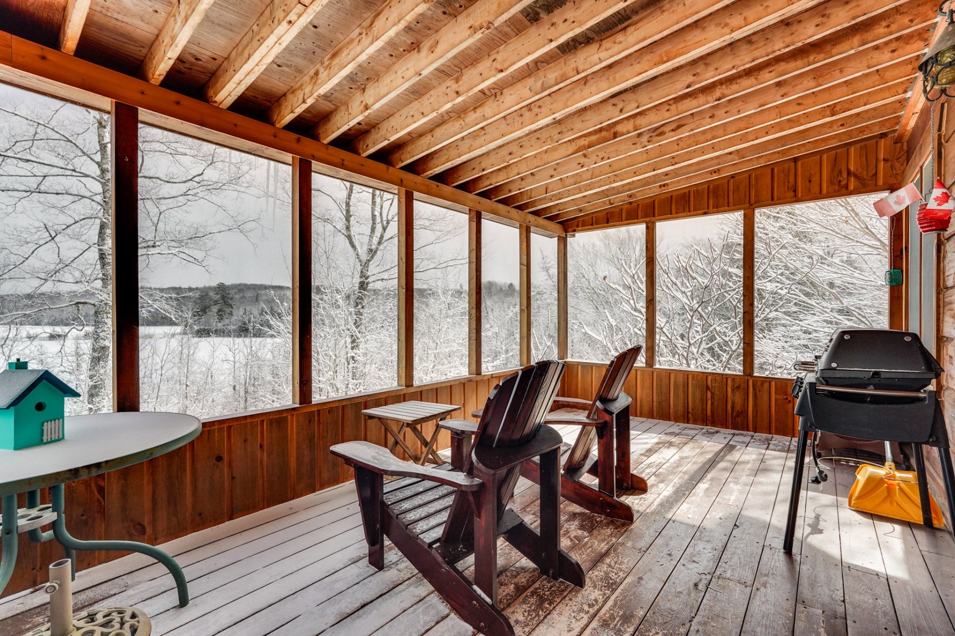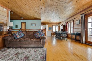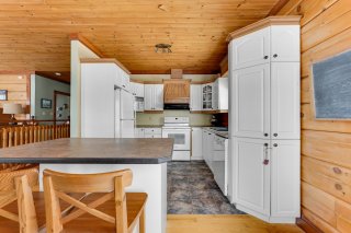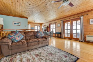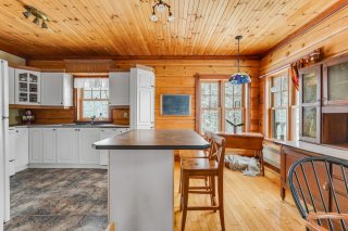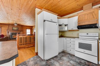 Inclus : Réfrigérateur, cuisinière, lave-vaisselle, laveuse, sècheuse, génératrice, barque, quai et nouvelle échelle, 2 chaises pour le quai, étagères de rangement dans la chambre principale, étagères en bois près de la fenêtre de la chambre principale, tous les rideaux et stores (à l'exception de ceux de la porte du gazebo), tous les miroirs de salle de bains, ustensiles pour le poêle à bois;