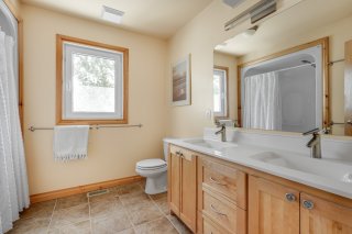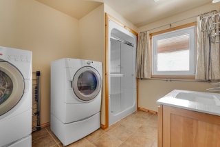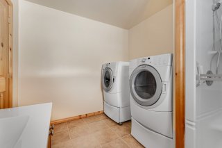 - Baignoire-douche surdimensionnée dans la salle de bain du dernier étage; douche surdimensionnée dans la salle de bain du rez-de-chaussée, qui a également une grande laveuse et sécheuse Whirlpool.