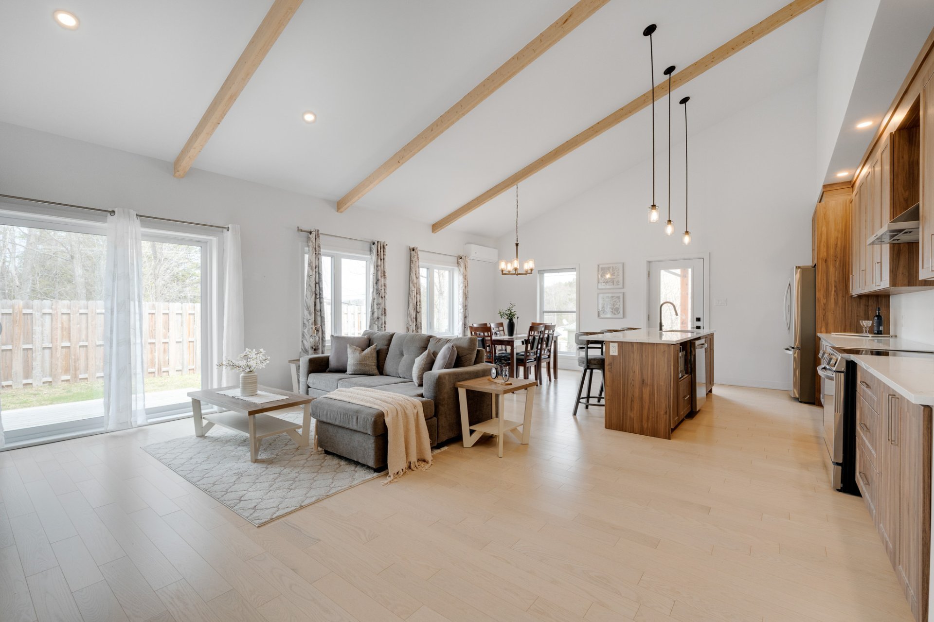 Votre refuge privée en nature au milieu de tout vous attend! Ce spacieux condo sur coin à aire ouverte de 2 chambres à coucher vous offre aucun voisin sur un côté, un abri d'auto pour deux voitures, des finitions haut de gamme, un plafond de 15 pieds dans la pièce principale, des planchers chauffants partout, une grande cuisine avec coin-repas et des armoires supplémentaires, une cour arrière privative avec terrasse ainsi qu'un système de filtration d'eau haut de gamme, laveuse et sécheuse pleine grandeur, une grande salle de bain et une douche séparée. L'intimité, la tranquillité, les services locaux et l'accès public à la rivière à pieds!