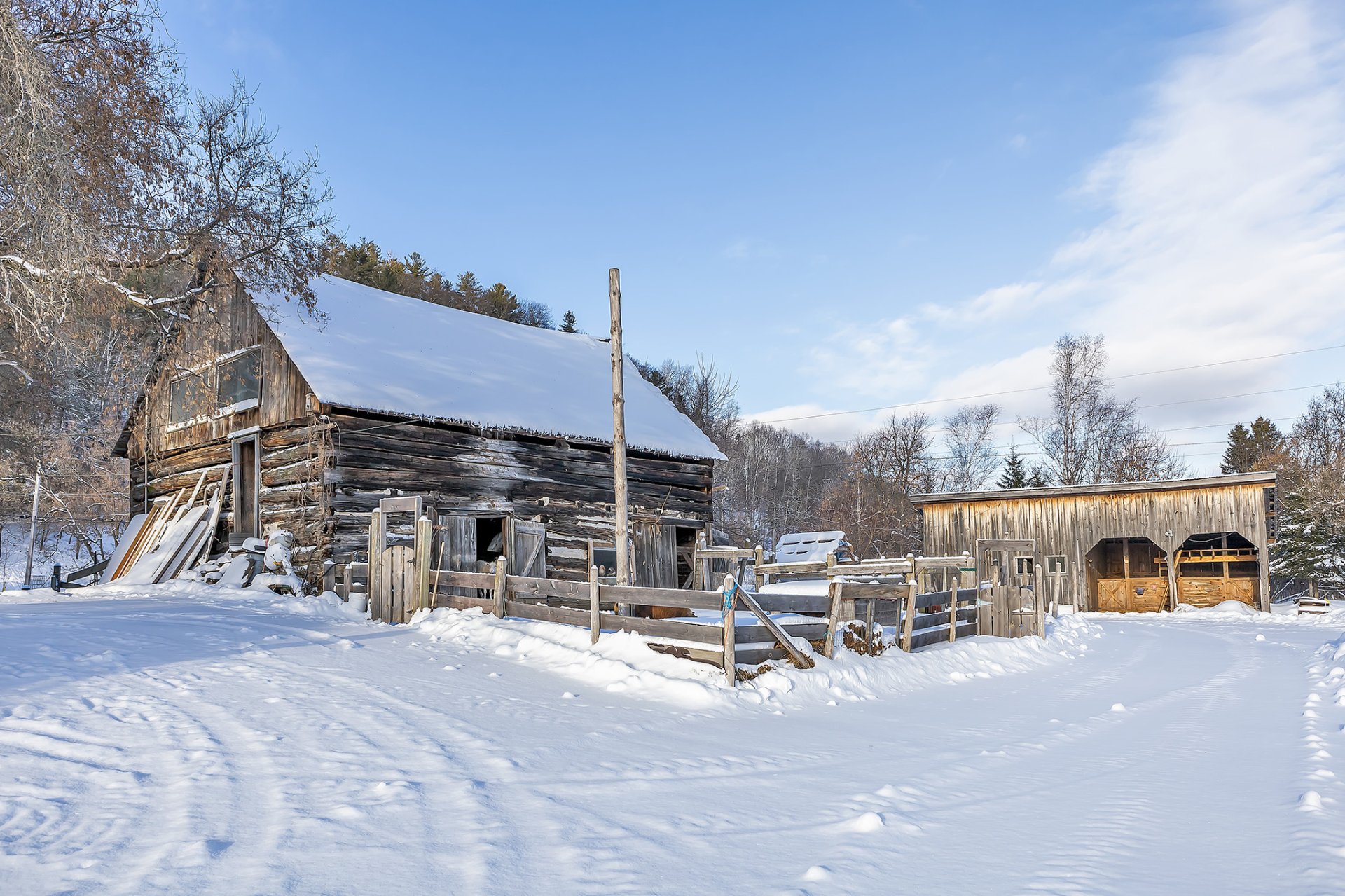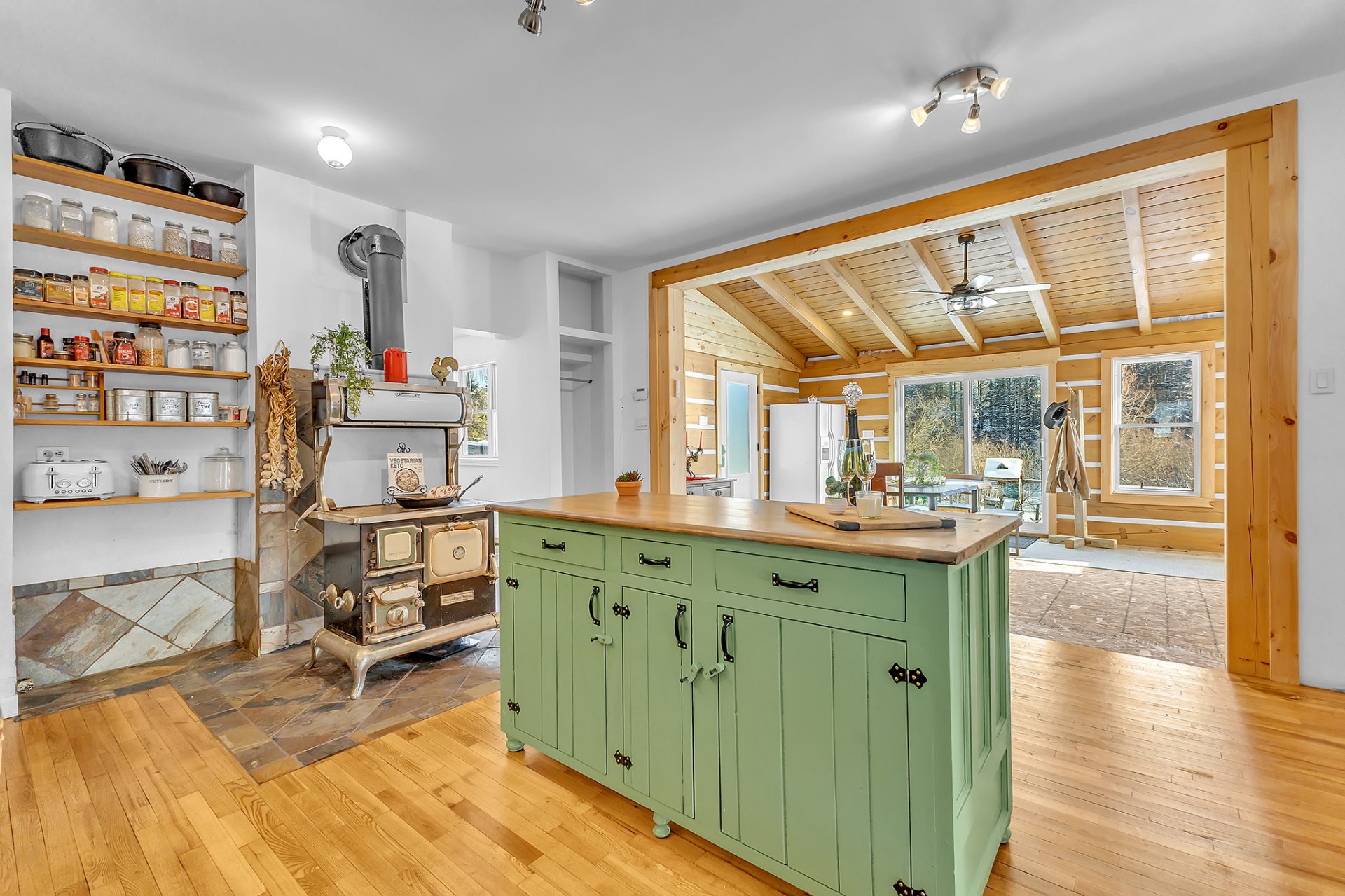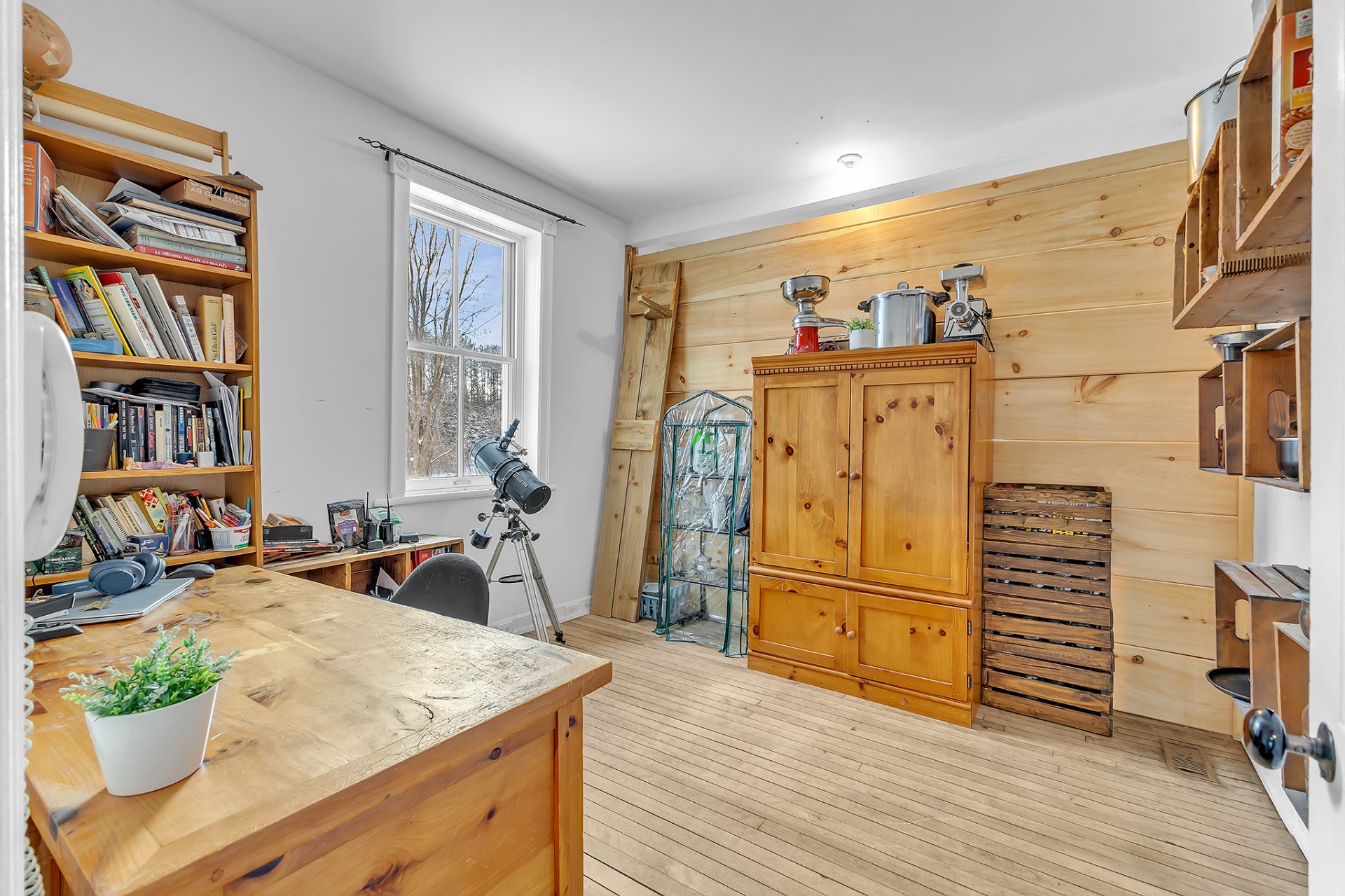 Exclus : Îlot de cuisine, caisses de rangement en bois dans le garde-manger, tous les effets personnels, outils, équipements, bois coupé en tas de sciage.