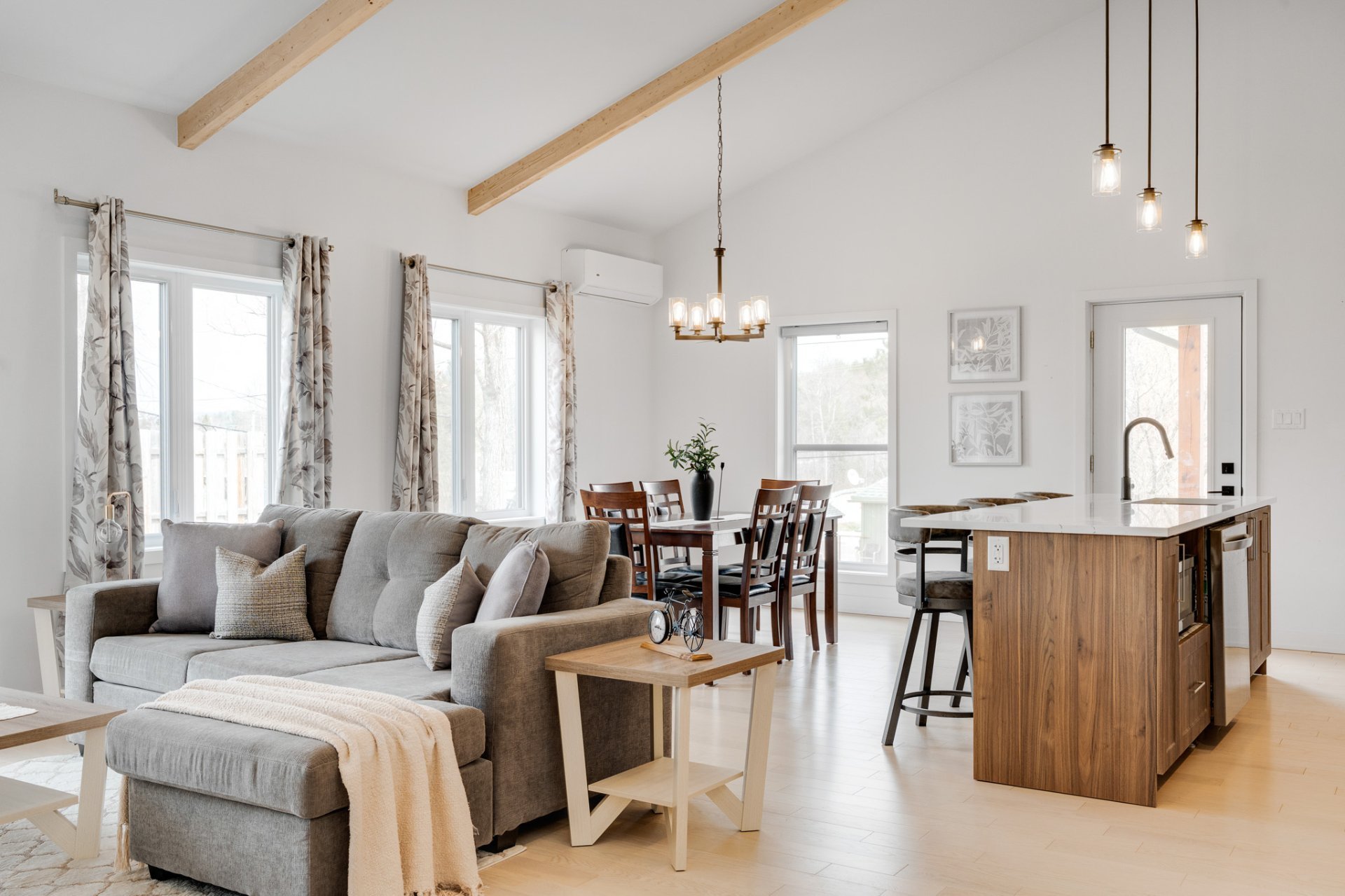 Votre refuge privée en nature au milieu de tout vous attend! Ce spacieux condo sur coin à aire ouverte de 2 chambres à coucher vous offre aucun voisin sur un côté, un abri d'auto pour deux voitures, des finitions haut de gamme, un plafond de 15 pieds dans la pièce principale, des planchers chauffants partout, une grande cuisine avec coin-repas et des armoires supplémentaires, une cour arrière privative avec terrasse ainsi qu'un système de filtration d'eau haut de gamme, laveuse et sécheuse pleine grandeur, une grande salle de bain et une douche séparée. L'intimité, la tranquillité, les services locaux et l'accès public à la rivière à pieds!