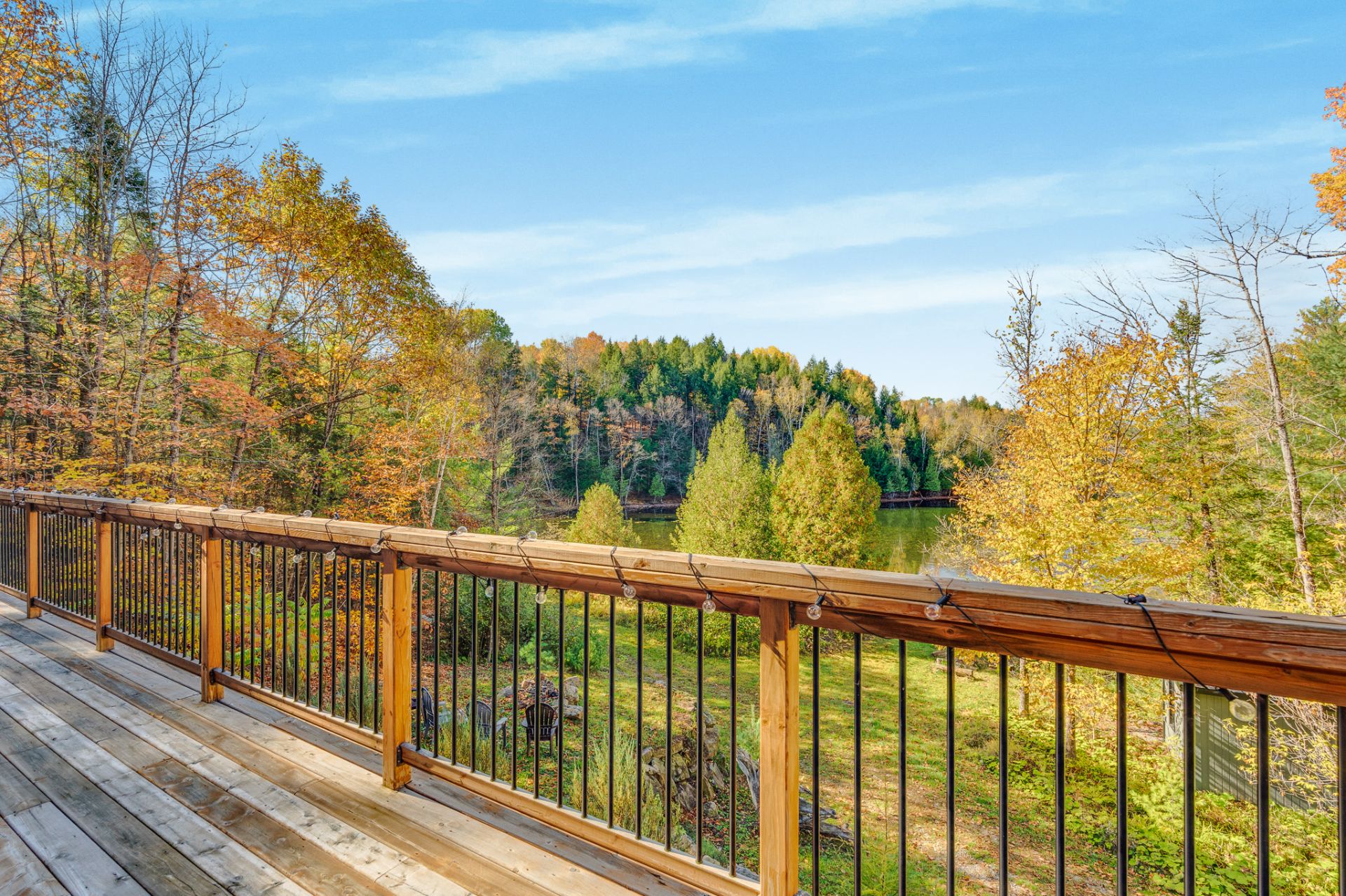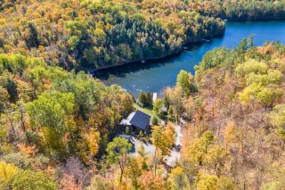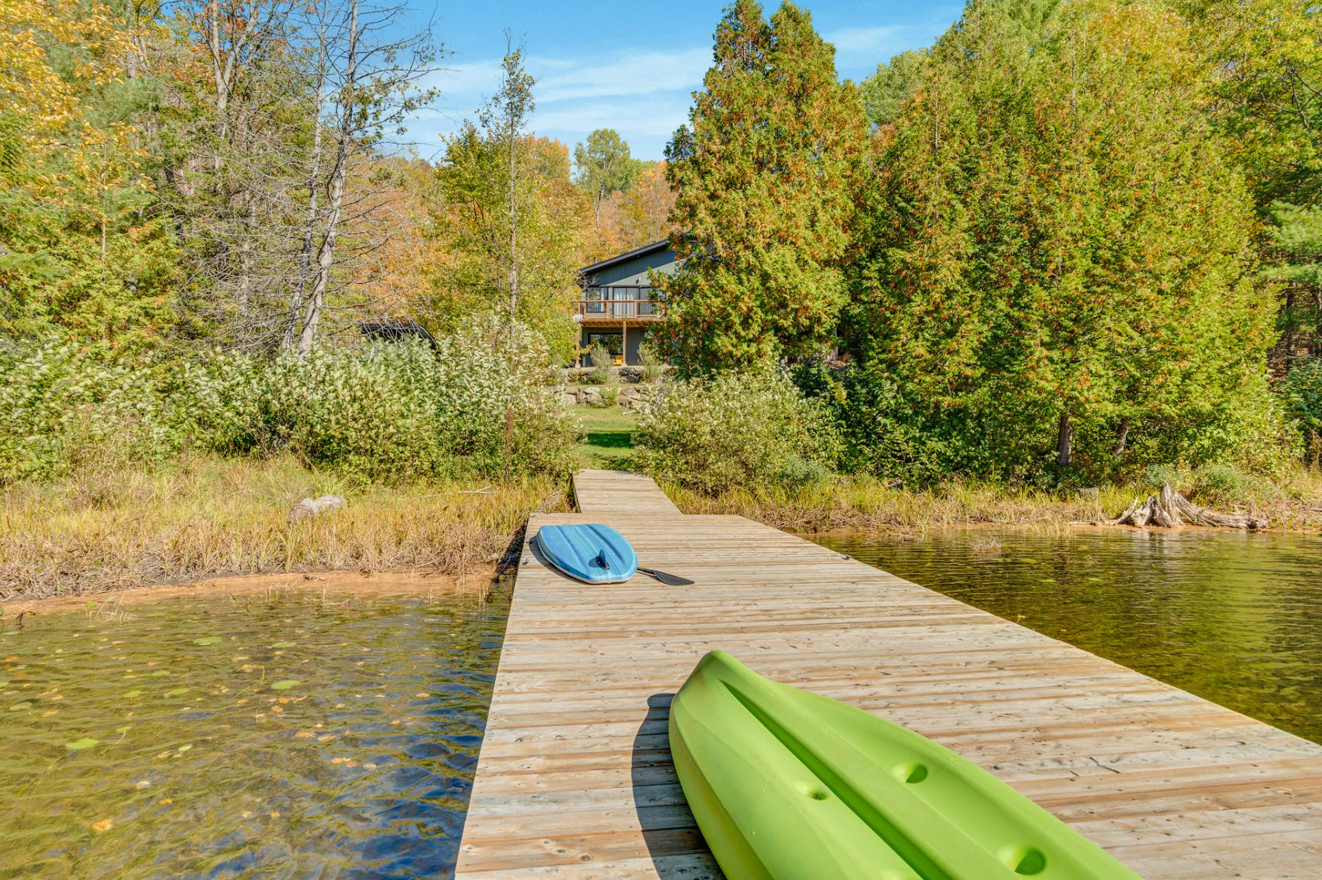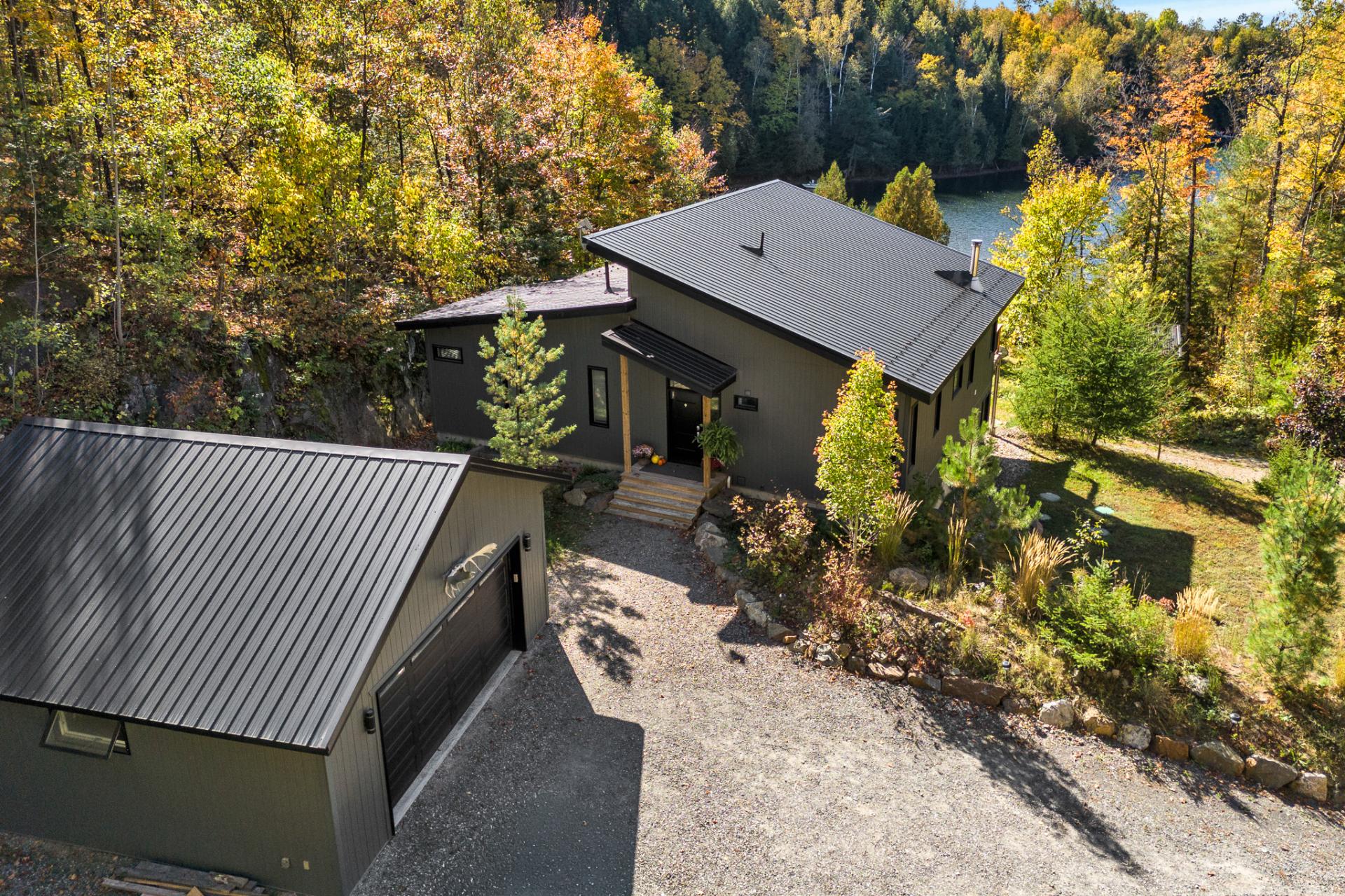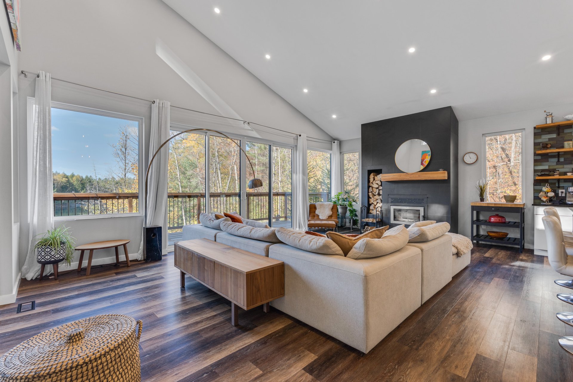 Maison meublée clef en main à aire ouverte de 4 CAC, perchée sur un terrain boisé privé, entourée d'arbres matures et d'un magnifique aménagement paysager en pierres massives surplombant plus de 350pi de rivage sur l'idyllique lac Dame, qui est relié au lac Grand et au lac Vert. Dotée de finitions de qualité, telles que des comptoirs en granit dans la cuisine, 3 SDB attenantes, une immense terrasse avec un gazebo, deux sorties au niveau inférieur, une cheminée à bois dans le salon et un plancher chauffant au rez-de-chaussée, deux emplacements pour feux de camp et un garage double indépendant, cette oasis champêtre est idéale pour une rési