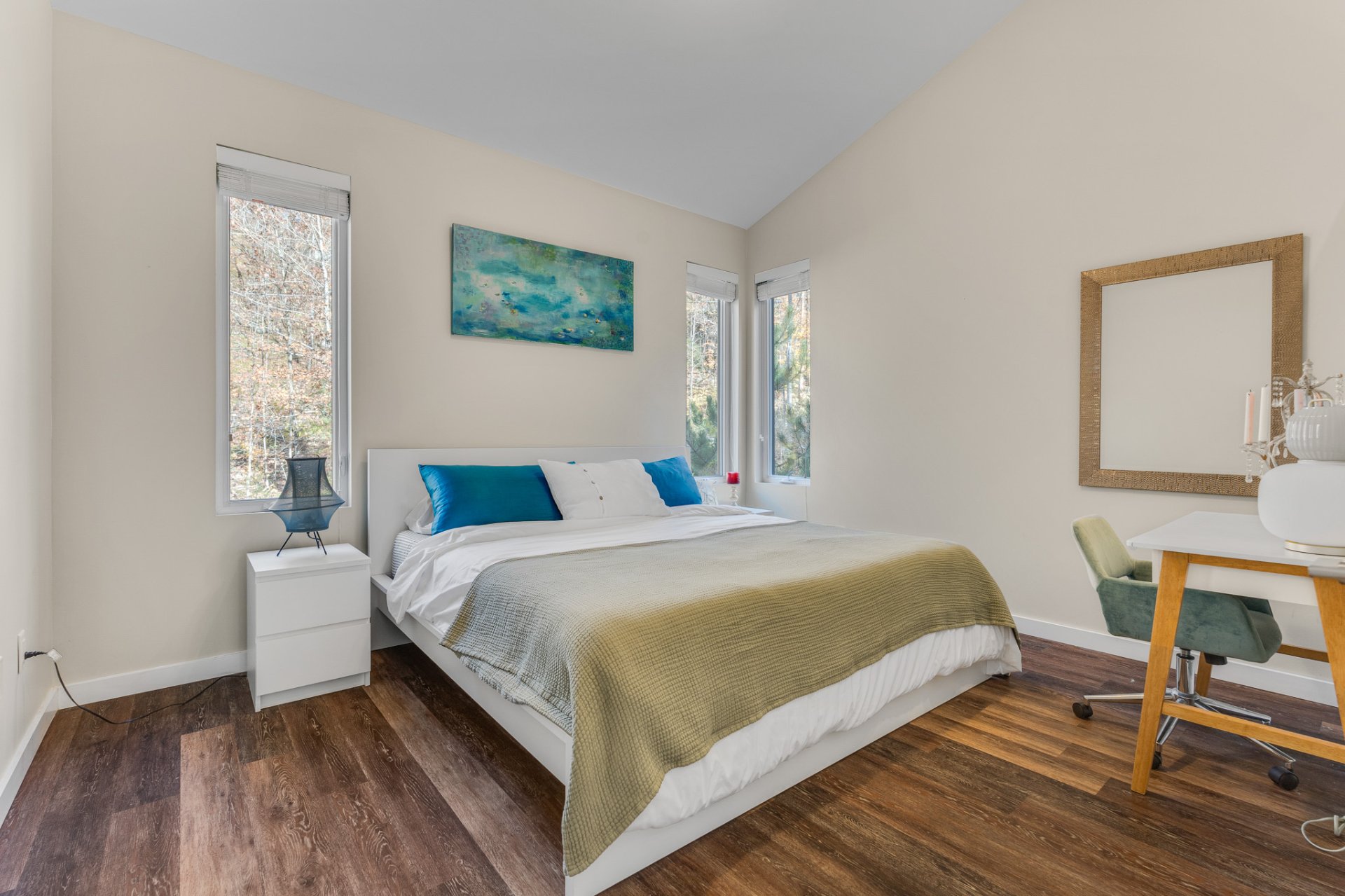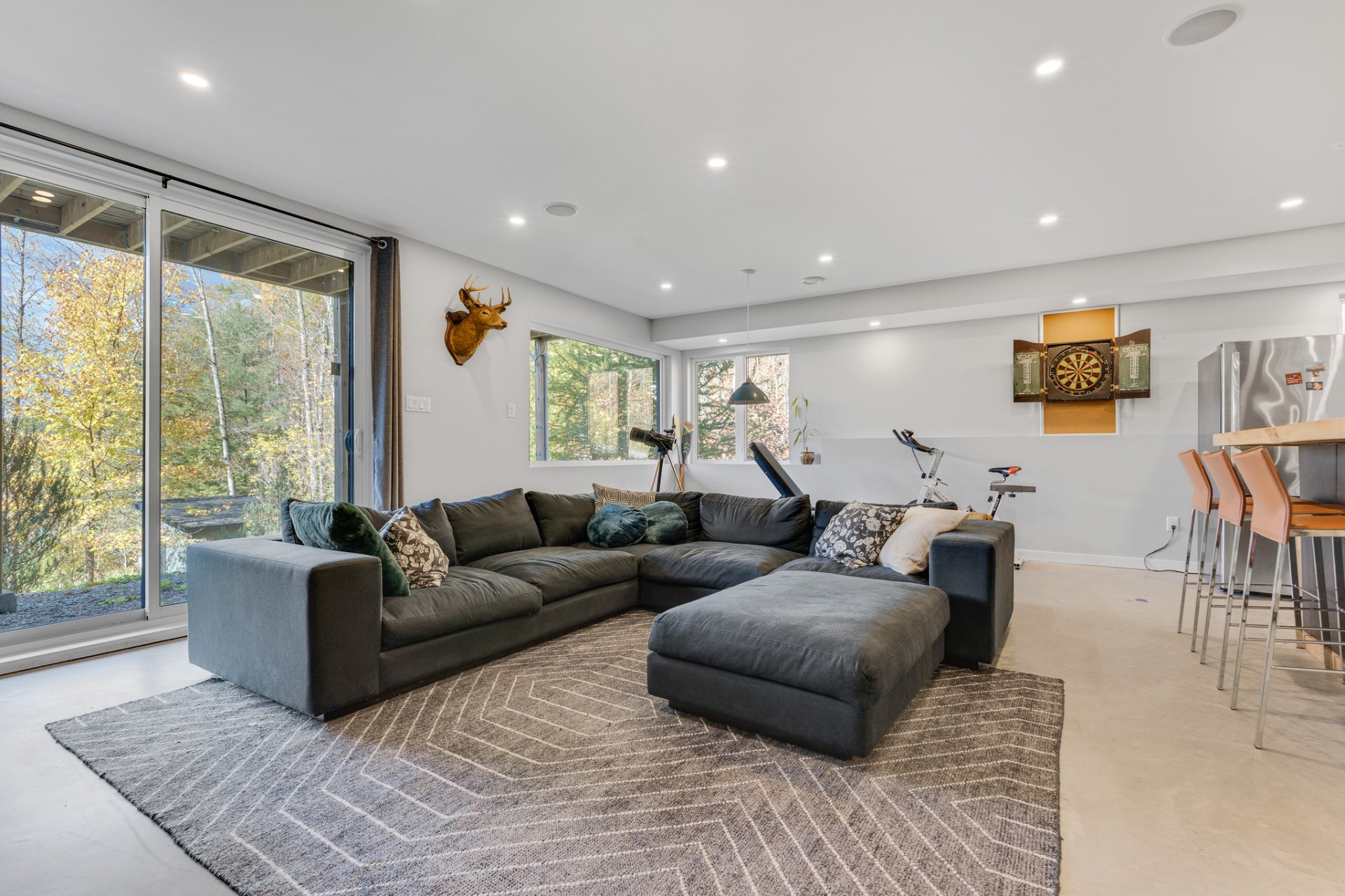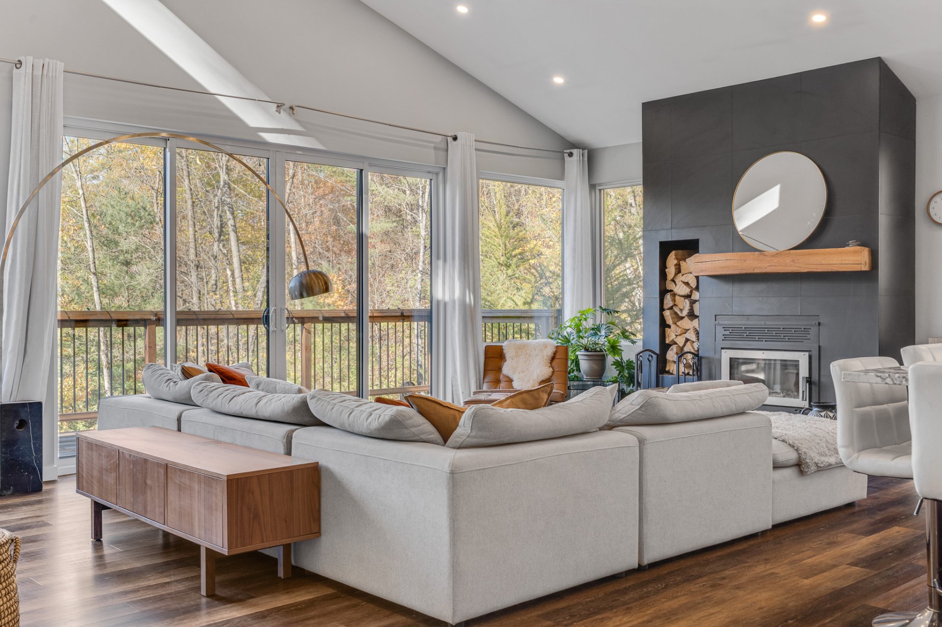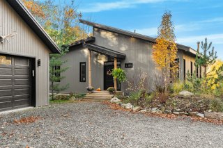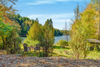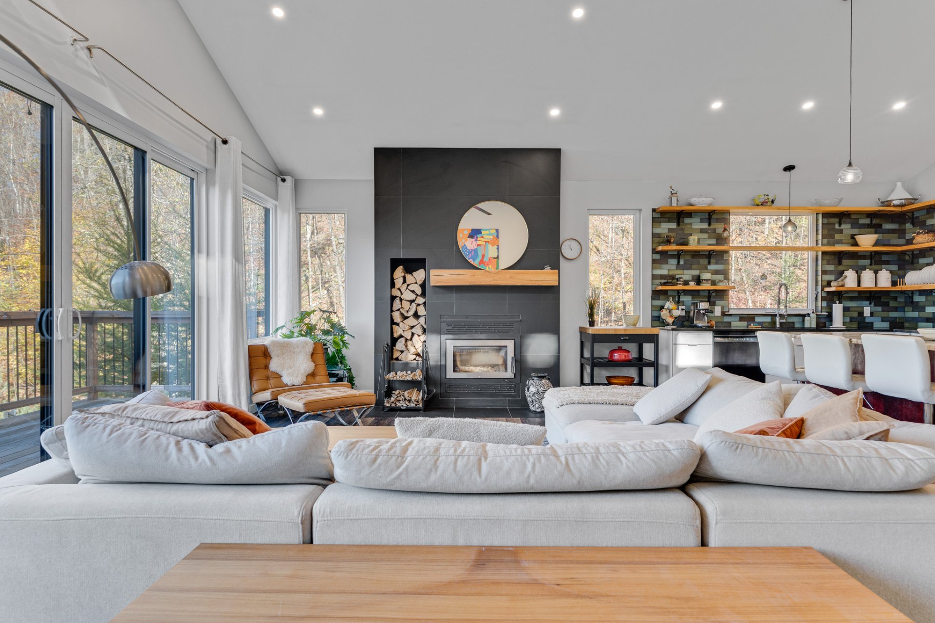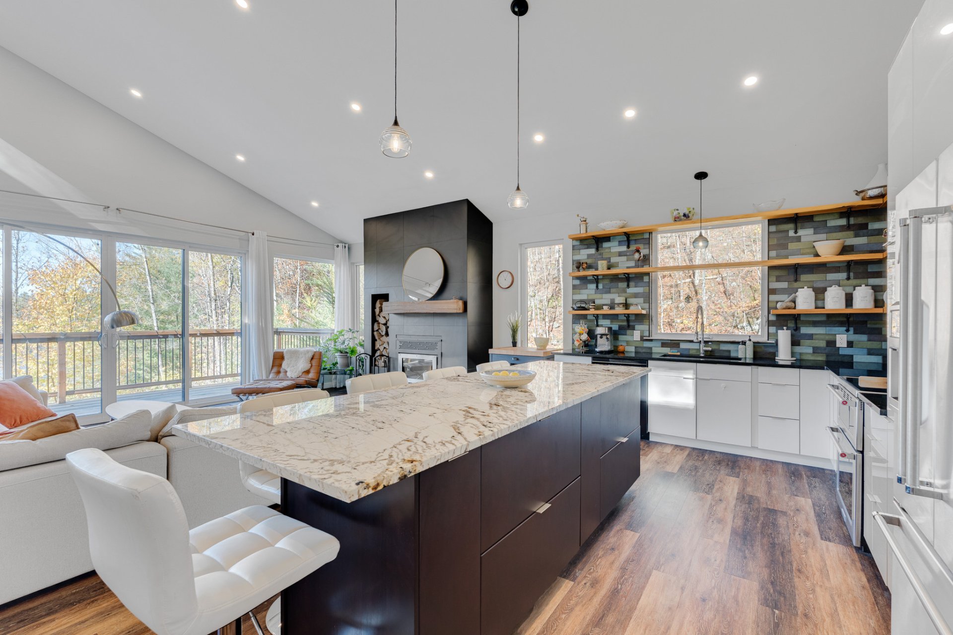 Maison meublée clef en main à aire ouverte de 4 CAC, perchée sur un terrain boisé privé, entourée d'arbres matures et d'un magnifique aménagement paysager en pierres massives surplombant plus de 350pi de rivage sur l'idyllique lac Dame, qui est relié au lac Grand et au lac Vert. Dotée de finitions de qualité, telles que des comptoirs en granit dans la cuisine, 3 SDB attenantes, une immense terrasse avec un gazebo, deux sorties au niveau inférieur, une cheminée à bois dans le salon et un plancher chauffant au rez-de-chaussée, deux emplacements pour feux de camp et un garage double indépendant, cette oasis champêtre est idéale pour une rési
