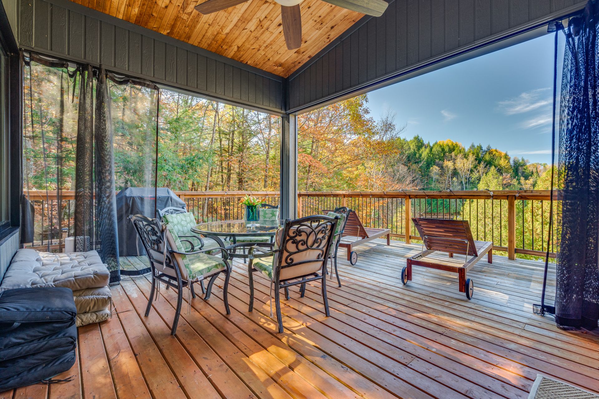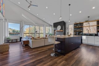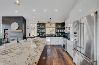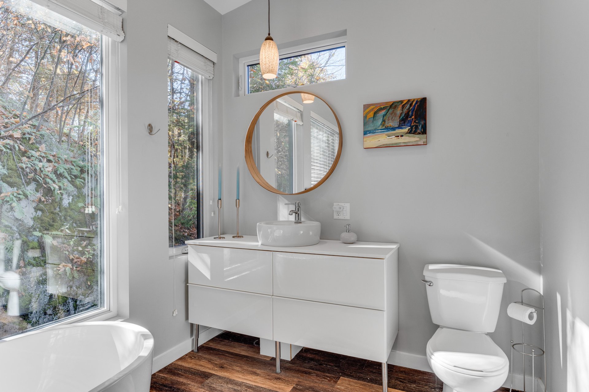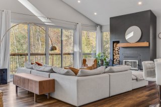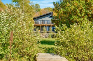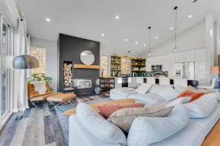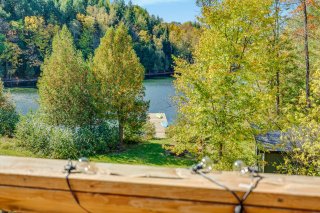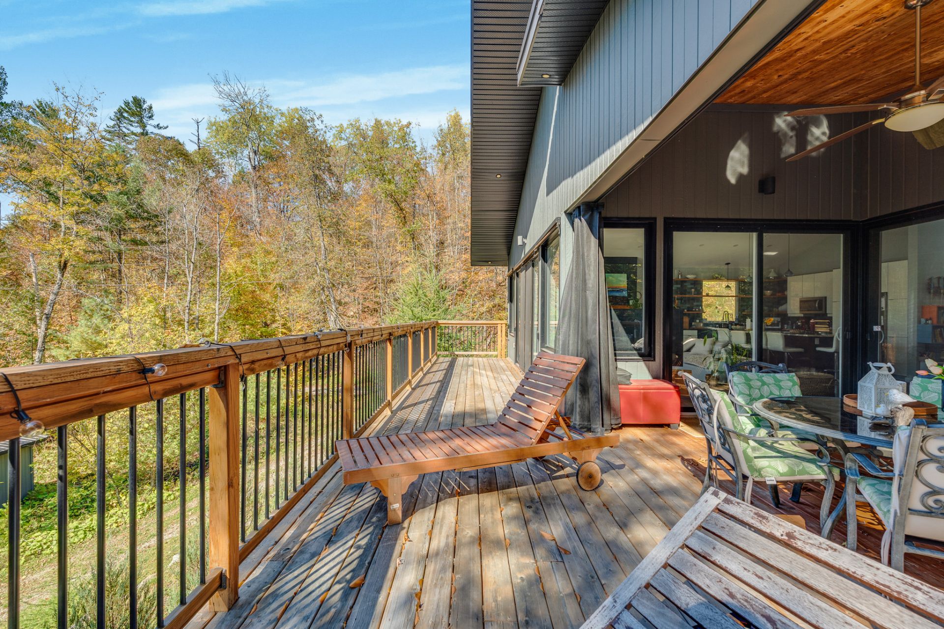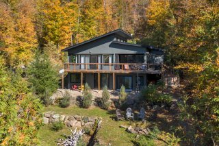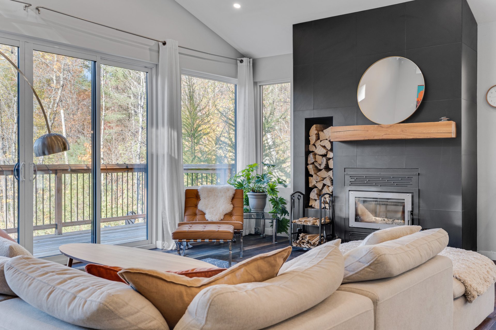 Maison meublée clef en main à aire ouverte de 4 CAC, perchée sur un terrain boisé privé, entourée d'arbres matures et d'un magnifique aménagement paysager en pierres massives surplombant plus de 350pi de rivage sur l'idyllique lac Dame, qui est relié au lac Grand et au lac Vert. Dotée de finitions de qualité, telles que des comptoirs en granit dans la cuisine, 3 SDB attenantes, une immense terrasse avec un gazebo, deux sorties au niveau inférieur, une cheminée à bois dans le salon et un plancher chauffant au rez-de-chaussée, deux emplacements pour feux de camp et un garage double indépendant, cette oasis champêtre est idéale pour une rési