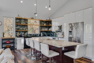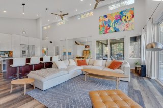 Exclus : EXCLUSIONS - Les articles suivants sont exclus de la vente : 1. le buffet et tout son contenu (salle à manger) 2. la table de boucher dans la cuisine ainsi que la petite machine à espresso 3. la télévision dans le salon avec son meuble 4. tous les tableaux (à l'exception du grand tableau du salon) 5. Fauteuil et pouf vintage en cuir du milieu du siècle dans le salon 6. Tous les articles sur les étagères en bois de la cuisine